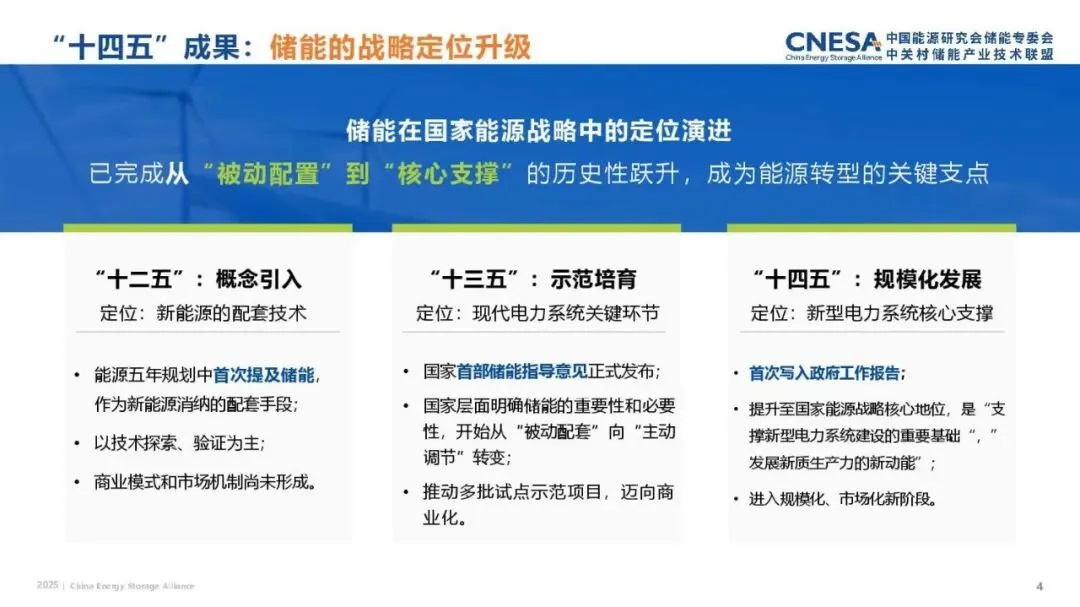 2025年储能政策全年盘点报告(附下载)文章摘要"十二五":概念引入定位:新能源的配套技术能源五年规划中首次提及储能,作为新能源消纳的配套手段;以技术探索、验证为主;商业模式和市场机制尚未形成。文章内容受篇幅限制,仅为部分报告预览回复暗号:2025储能政策全年盘点-23页-------------------------------------------------------------------------*免责声明:以上报告均为本公众号通过公开、合法渠道获得,报告版权归原撰写/发布机构所有,如涉侵权,请联系删除;本号报告为推荐阅读,仅供参考学习,不构成投资建议。往期报告精选2023年工业数字化关键技术及发展趋势研究报告(附下载)2023-06-022023年汽车终端市场分析及展望研究报告(附下载)2023-06-032023年计算机行业AIGC专题研究报告(附下载)2023-06-04工业数字化智能化2030年白皮书(附下载)2023-06-062023年光伏4-5月专题研究报告(附下载)2023-06-092023年中国文化元宇宙AIGC发展研究报告(附下载)2023-06-202023年中国汽车行业新能源转型战略白皮书(附下载)2023-06-212023年中国制造企业出海现状调研研究报告(附下载)2023-06-242023全球数字技术发展研究报告(附下载)2023-06-252023年智能供应链计划白皮书(附下载)2023-06-26点分享点收藏点点赞点在看