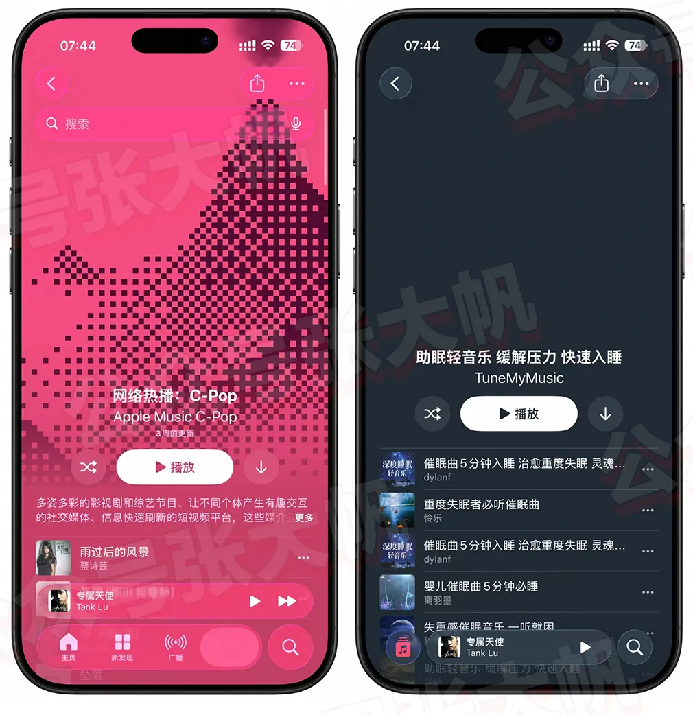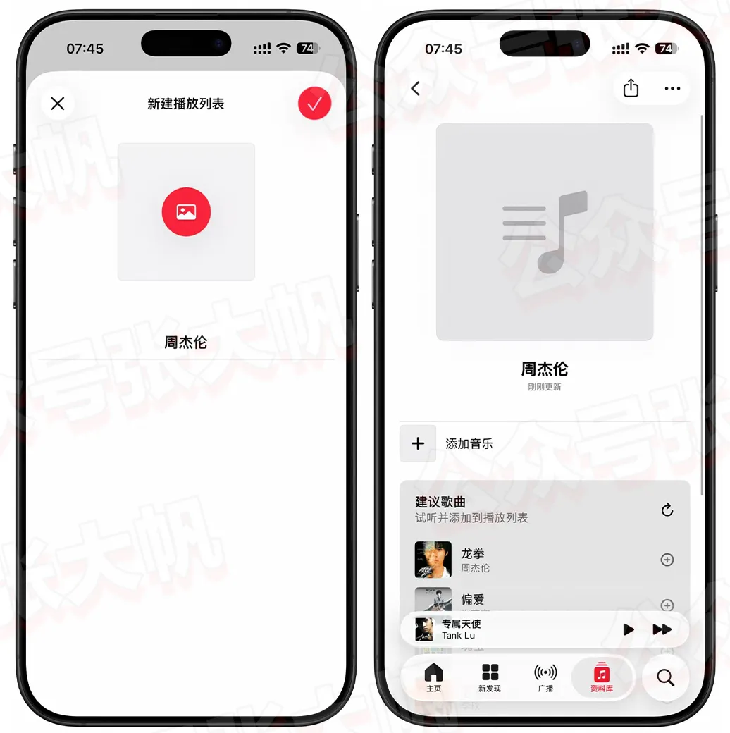 播放列表和封面进行了渐变颜色统一,播放按钮的液态效果也进行了优化,给支持苹果AI的设备加入了智能歌单功能,新建歌单后,会根据风格自动加入音乐,之前是推荐!