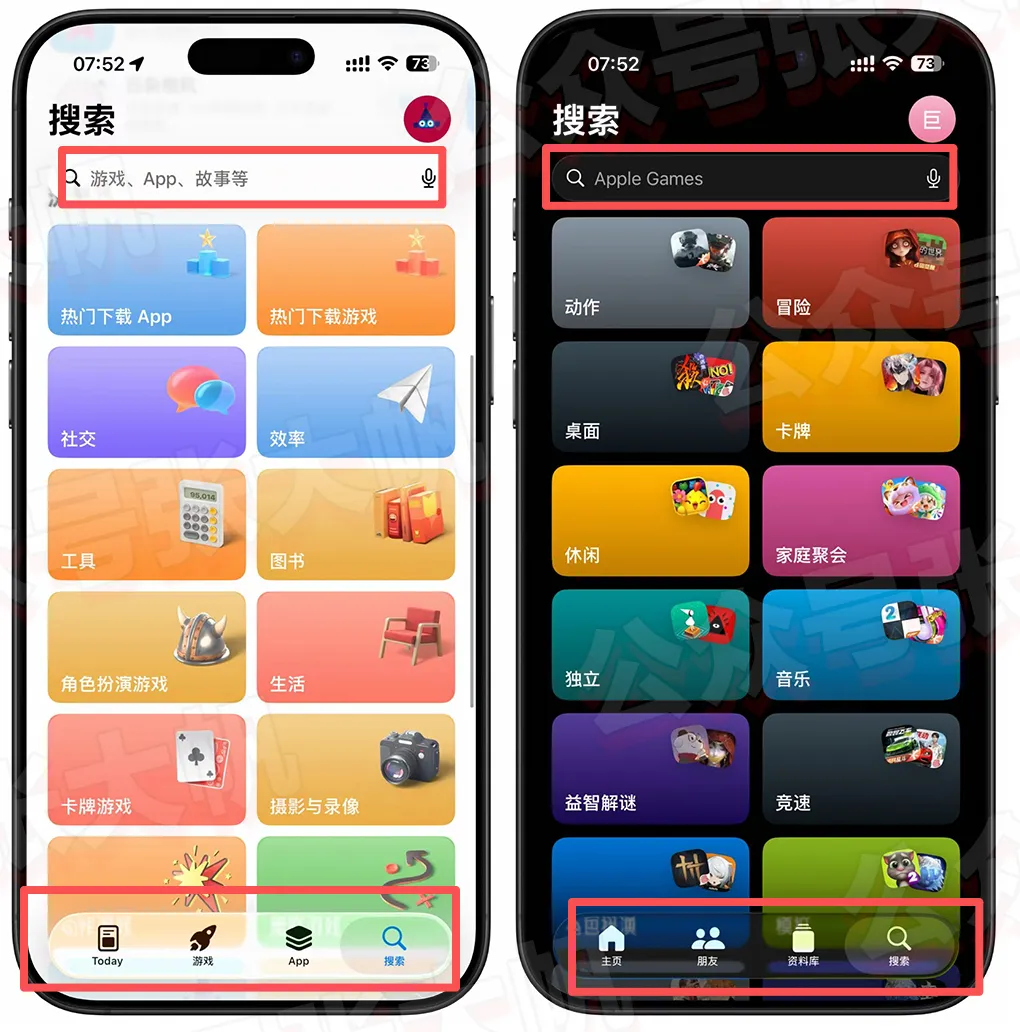 应用商店和游戏APP 底部的搜索,由之前单独的搜索按钮,变成现在的连为一体,点击后,搜索框由之前的底部,又移到顶部了!