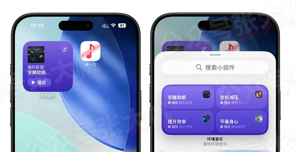 长按桌面空白处,添加小组件,新增了环境音乐小组件,可以添加到桌面快速打开音效,方便快捷!