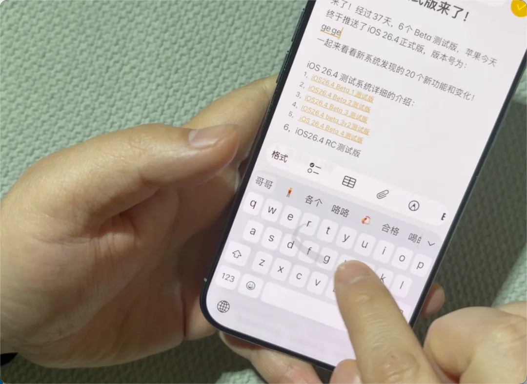 在 iOS 26 系统快速打字,会出现断触的问题,很多朋友都体验到了,升级后终于修复了,难怪我老打错字,原来是系统的原因!