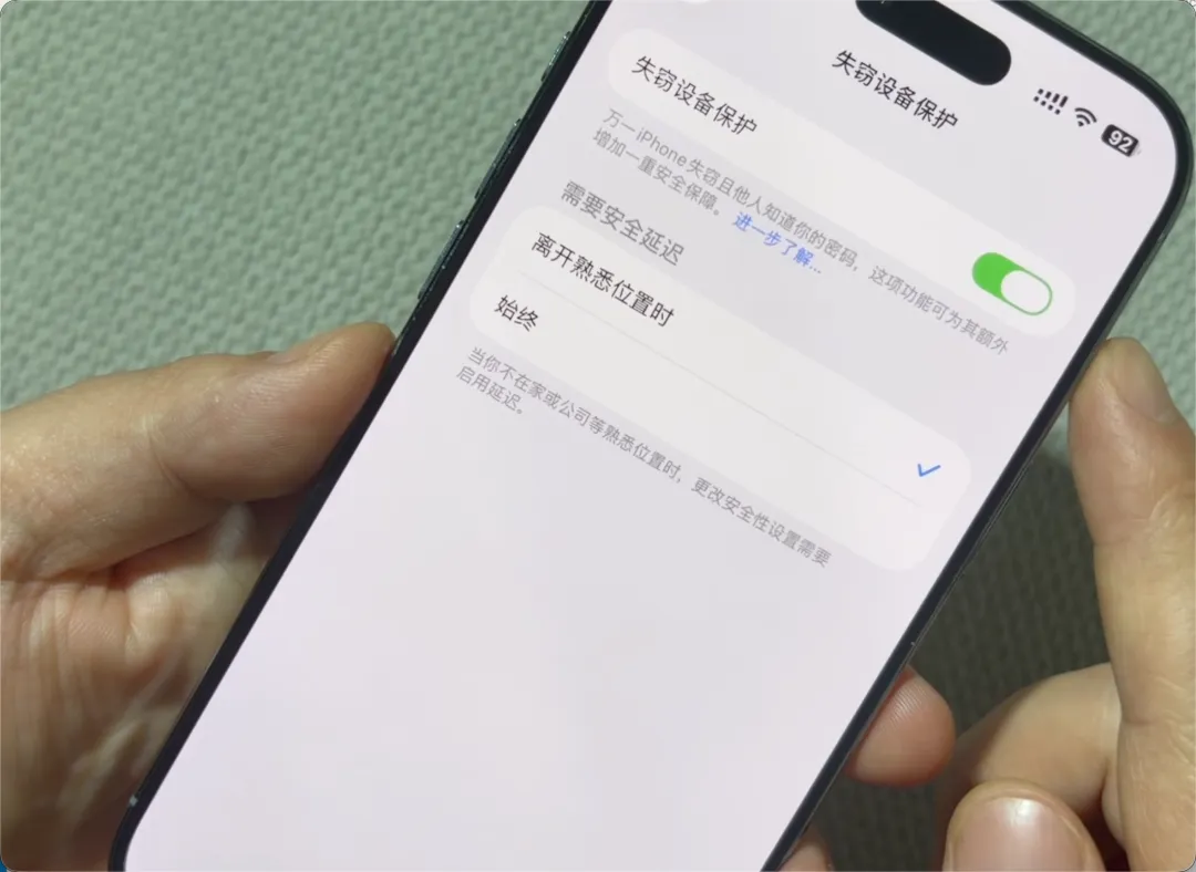 升级iOS26.4后,系统会默认开启失窃设备保护,可以去隐私与安全,底部查看,之前默认是关闭状态!