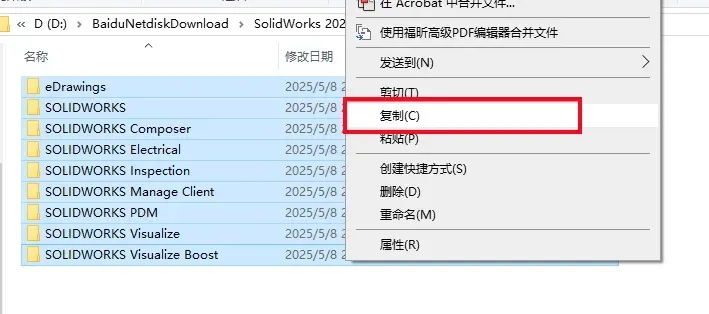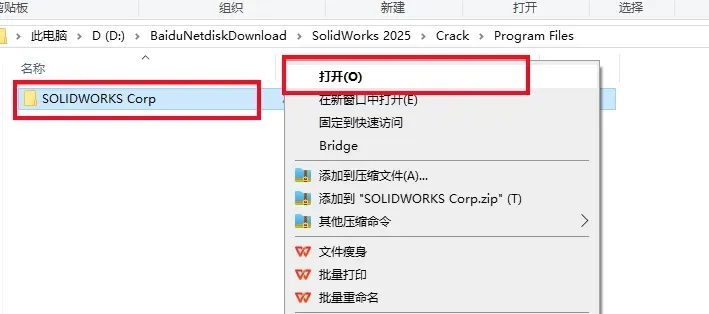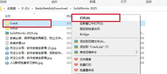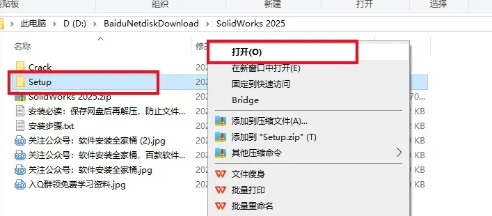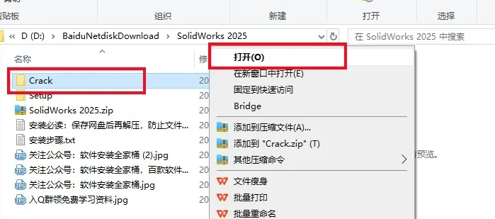 1.打开下载的SolidWorks 2025软件安装包,鼠标右击压缩包选择【解压到当前文件夹】。