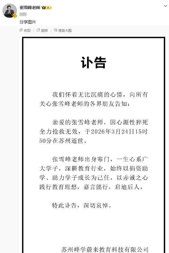 一边,是张雪峰去世的消息刷屏。