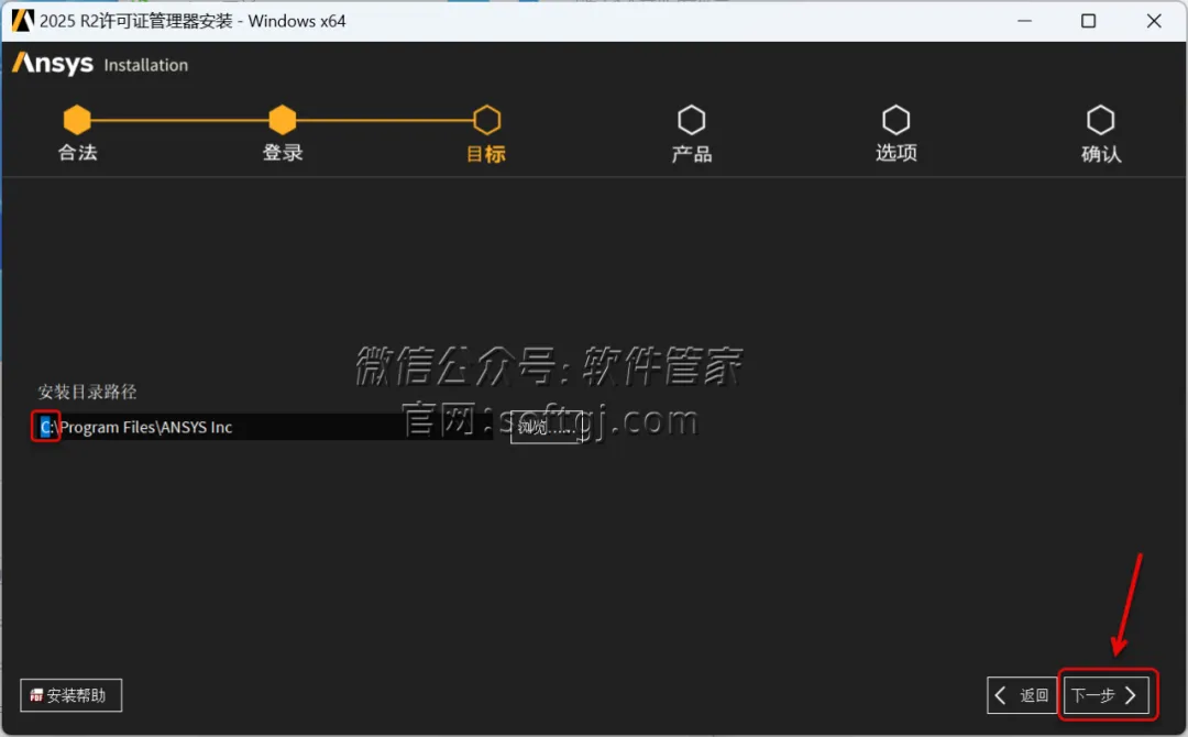 30.修改路径地址中的第一个字符C可更改安装位置(如:把C改为D软件将安装到D盘),点击【下一步】。