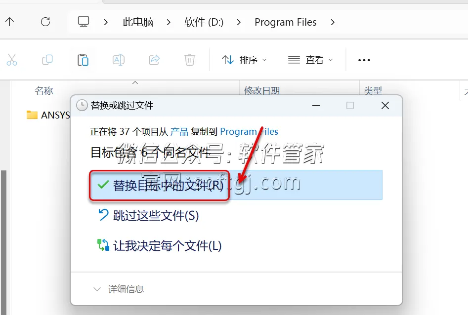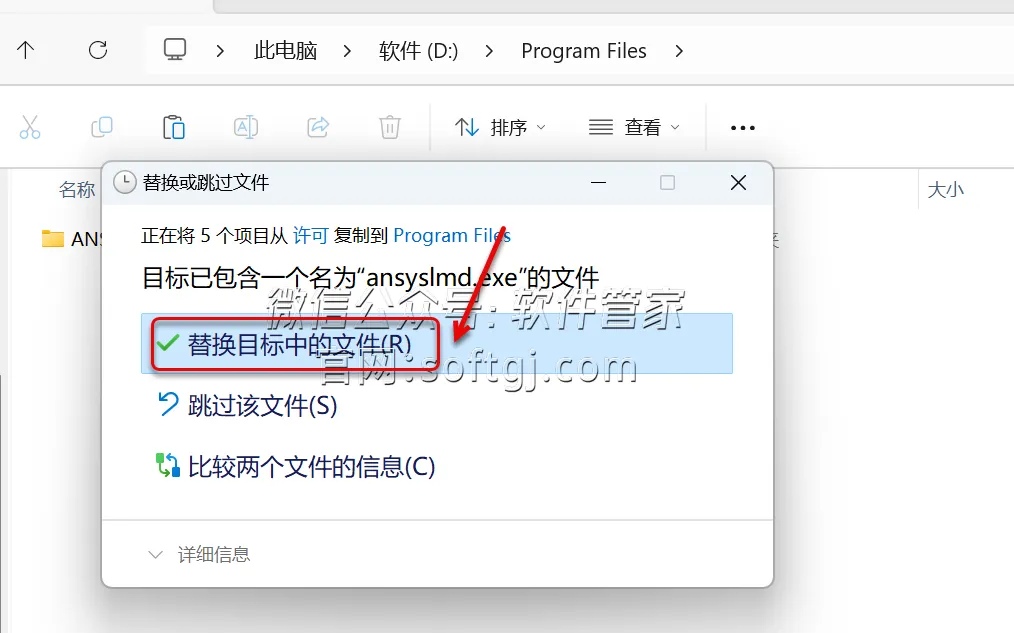 16.点击【替换目标中的文件】。