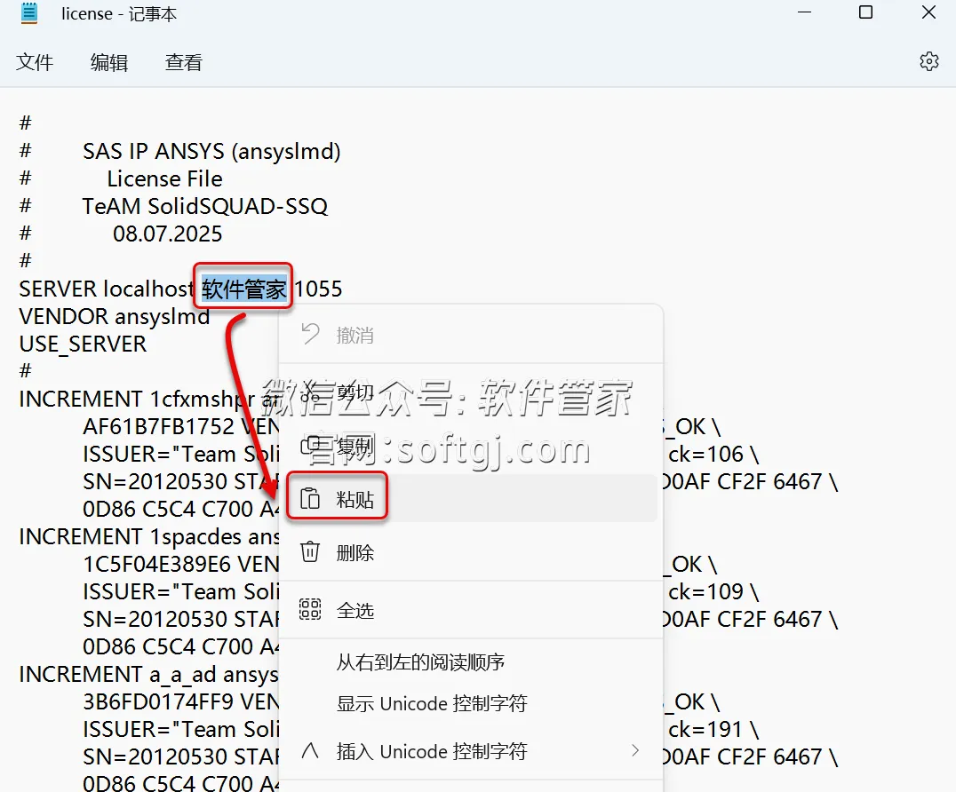 20.选中文档中的“软件管家‘鼠标右击选择【粘贴】。