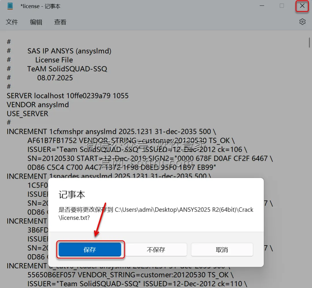 21.点击右上角【X】,选择【保存】。