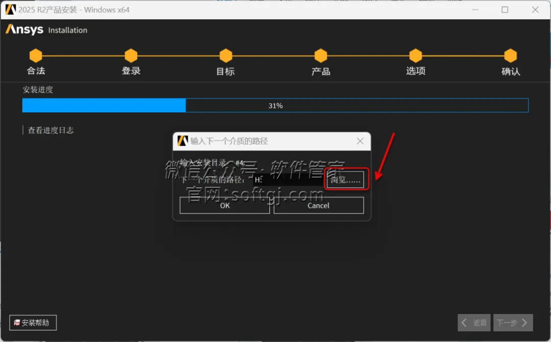 54.当安装进度到31%时,点击【浏览..】。