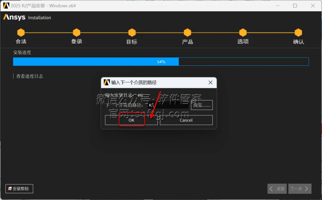 60.当安装进度到54%时,点击【浏览..】。