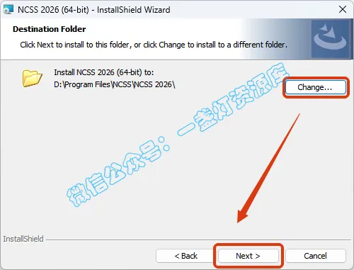 6.点击【Change...】可以选择软件安装路径,将首字符C改为D表示安装到D盘,安装路径不要出现中文,点击【Next】
