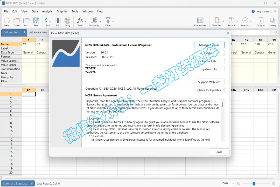 NCSS是一款专业的统计分析软件。它具备全面且强大的统计分析功能,涵盖了描述性统计、假设检验(如t检验、方差分析等)、回归分析(线性回归、非线性回归等多种类型)、方差分析(包括单因素、多因素方差分析等)、生存分析等众多常见的统计方法,能满足不同领域和复杂程度的分析需求。其界面设计简洁直观,操作相对便捷,即使没有深厚统计学背景的用户也能较为轻松地使用。同时,NCSS还提供了丰富的图表绘制功能,可生成各种高质量的统计图表来直观展示数据和分析结果,在医学、生物学、社会学、经济学等多个学科领域以及企业的质量控制、市场调研等方面都有广泛的应用。