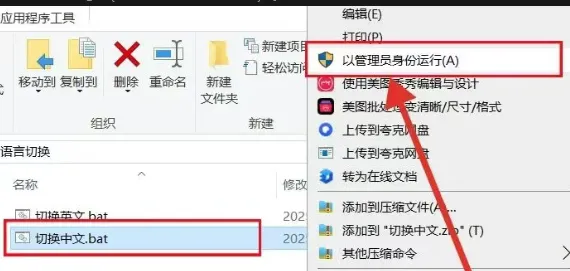 25、选中切换中文,鼠标右键【以管理员身份运行】