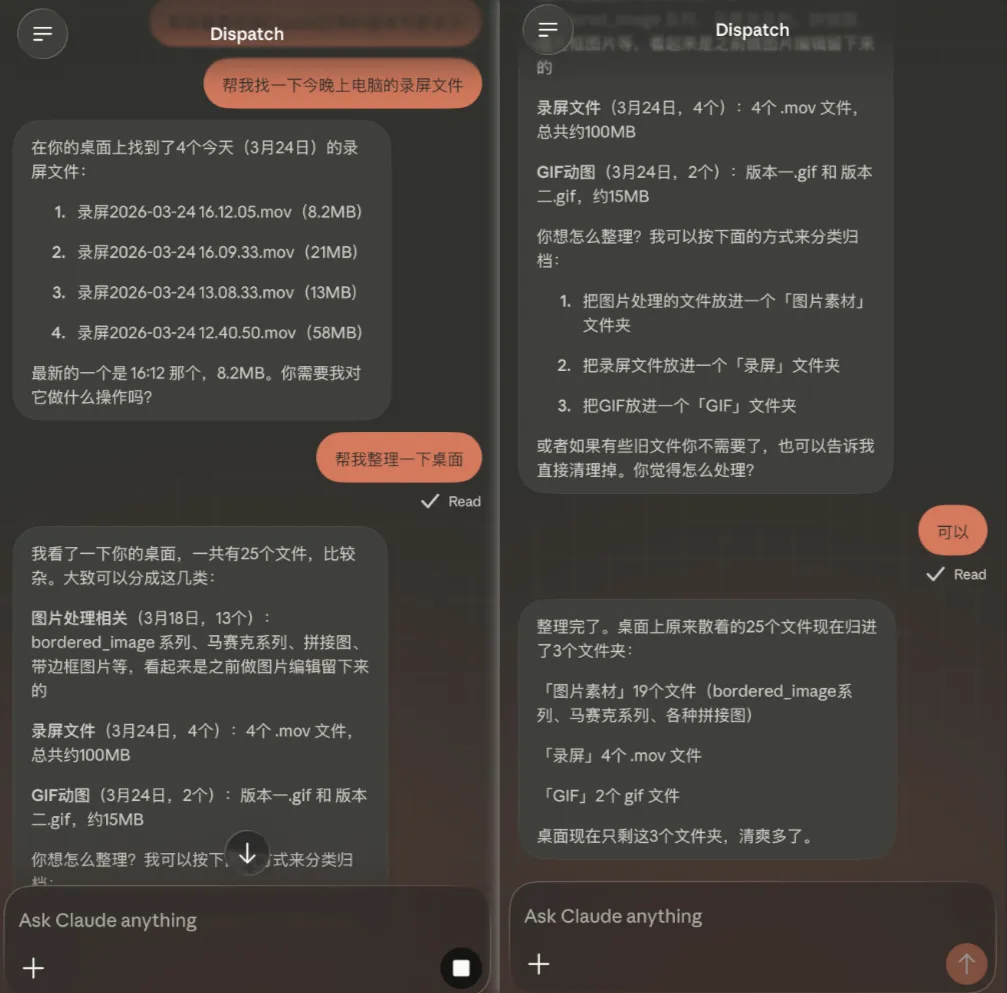 然后我们用Dispatch和Computer Use组合起来,给大家看一看,这个超级AI助理、上位小龙虾的威力。