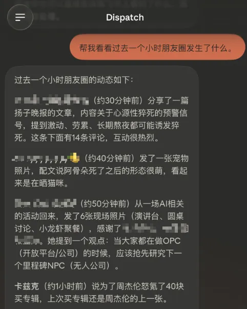 那看都能看了,我寻思是不是也能用Dispatch+Computer Use的组合,帮我发一条朋友圈吧。