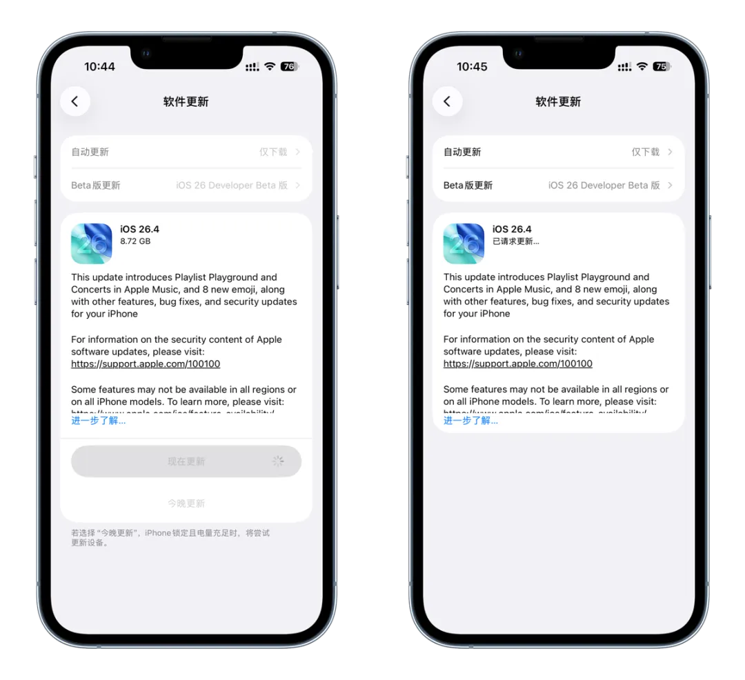 兄弟们,今早起来手机就弹窗了——iOS 26.4 正式版终于推送了!🎉