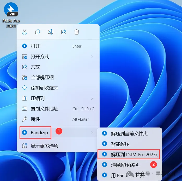 1、下载PSIM Pro 2023软件安装包到电脑上,右键选择【解压到PSIM Pro 2023\】