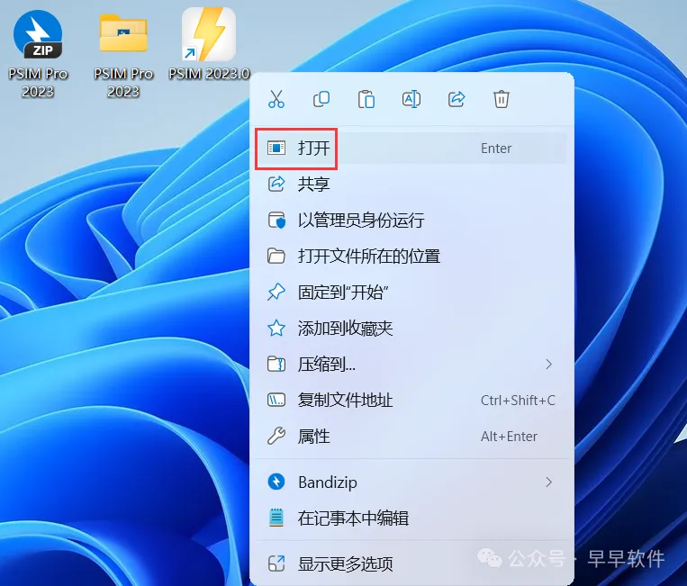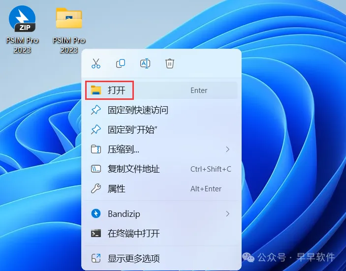 20、回到桌面,右键桌面上的【PSIM 2023.0软件图标】,点击【打开】