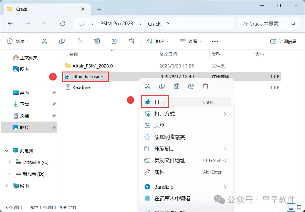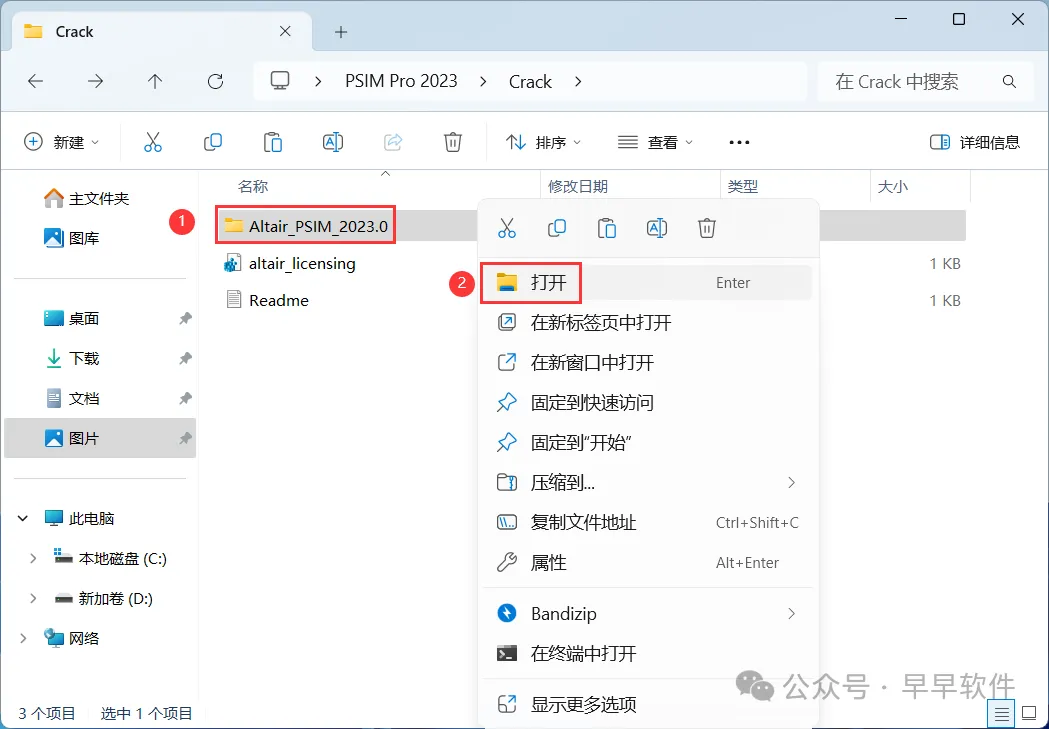15、回到Crack文件夹,找到【Altair PSIM 2023.0】文件夹,右键【打开】它