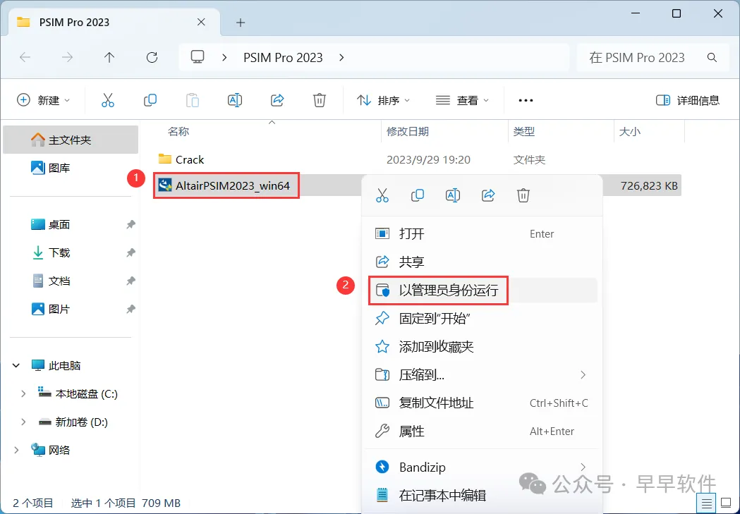7、回到PSIM Pro 2023文件夹,找到【AltairPSIM2023_win64】应用程序,右键选择【以管理员身份运行】它