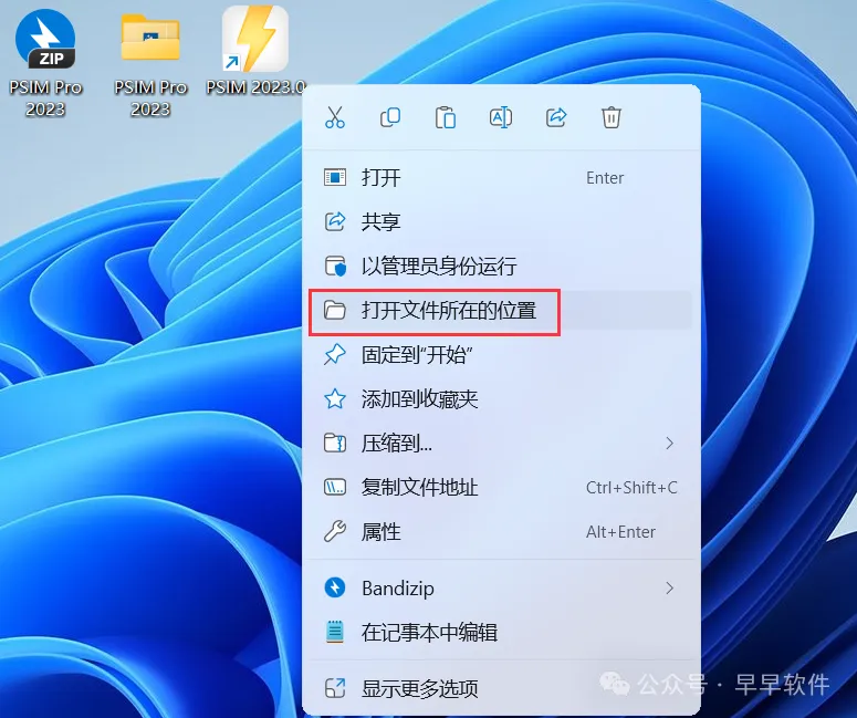 17、回到桌面,右键桌面上的【PSIM 2023.0软件图标】,点击【打开文件所在的位置】