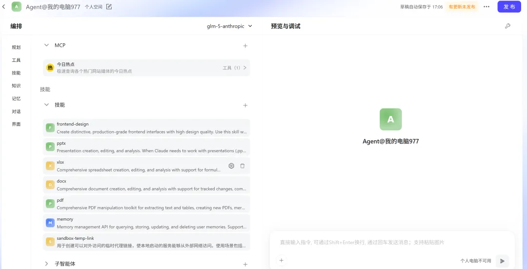 在开发智能体时,合理结合技能和 MCP,能够让自定义智能体接入更多外部能力,也更容易把功能继续往深处扩展。