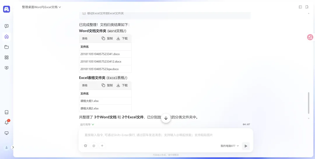 NuwaClaw 可以根据工作文件夹,对文件进行分类整理。