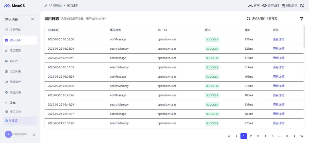 访问https://memos-dashboard.openmem.net/cn/requests/,可以查看记忆的请求日志记录。