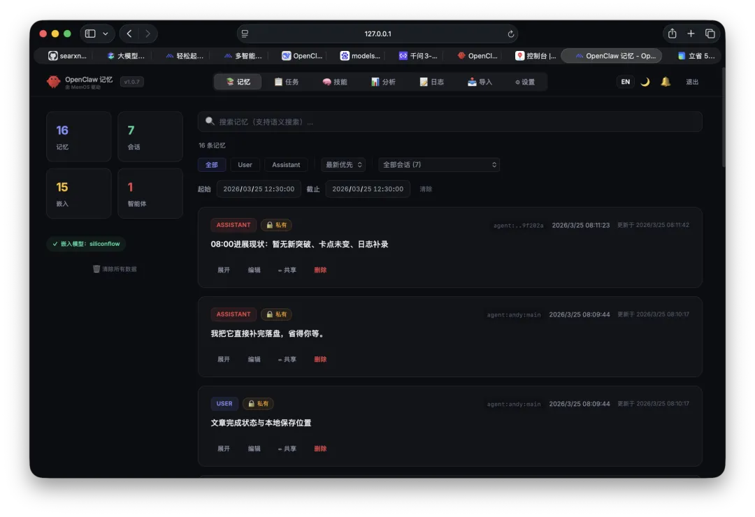 如果说云插件解决的是“记忆召回更精准、成本更可控”,那么本地插件真正让我眼前一亮的,是它把记忆系统做成了一整套流水线。
