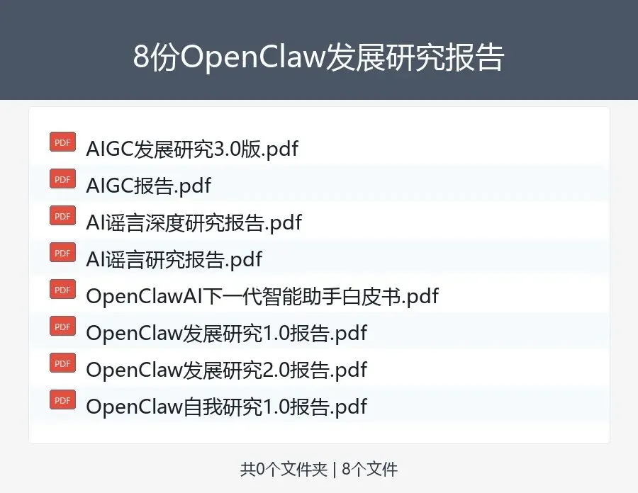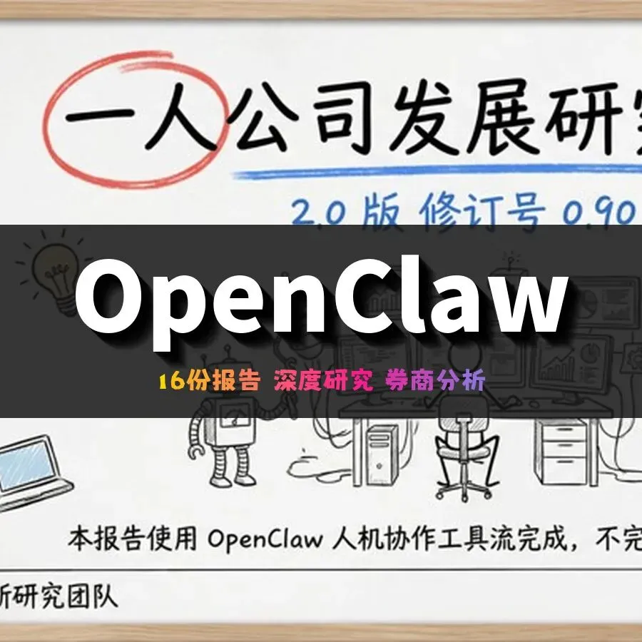 16份OpenClaw深度研究报告,涵盖发展研究、行业应用、券商分析等多维度内容,适合AI研究者、投资者学习参考。