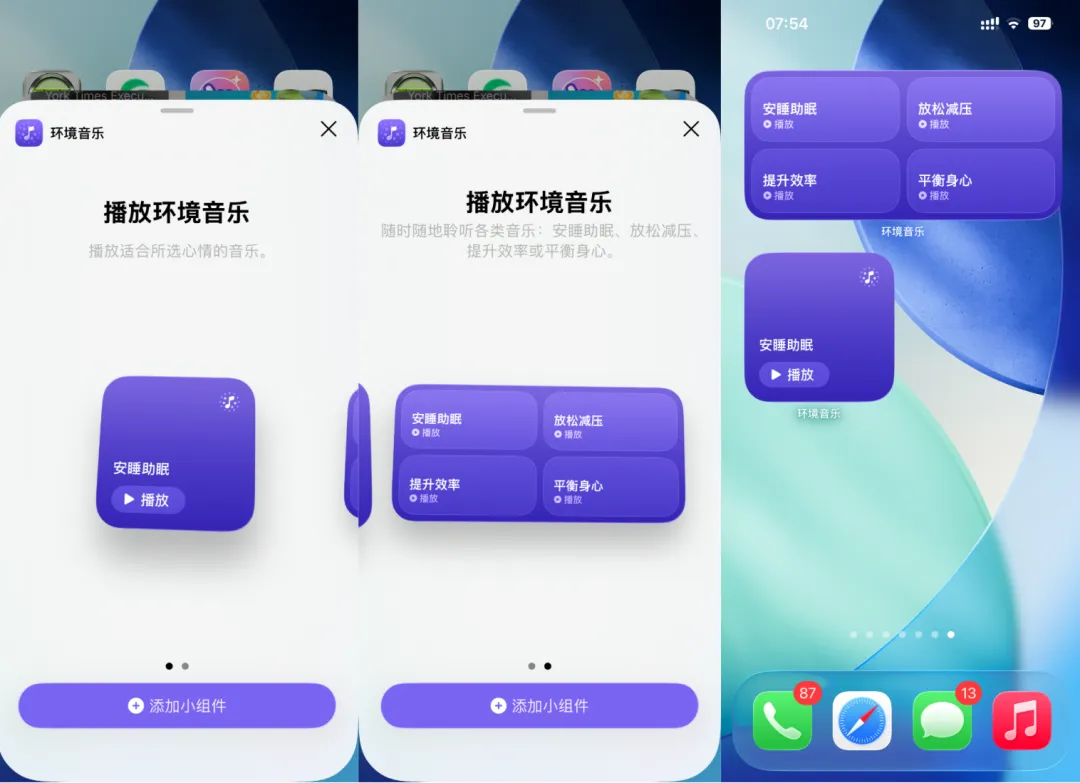 6、新增了两个「环境音乐」的小组件。