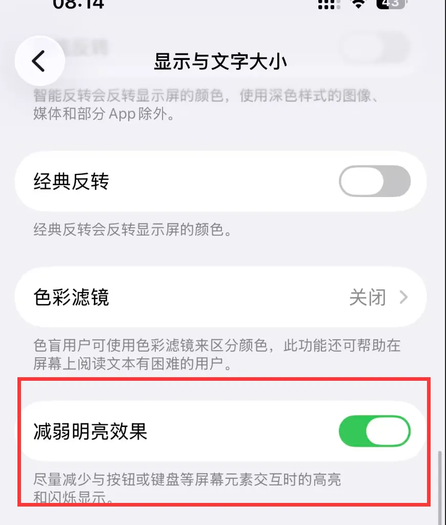 10、新增「减少高亮标记效果」选项,开启后在输入框、密码界面等位置的点触高亮效果会被关闭。