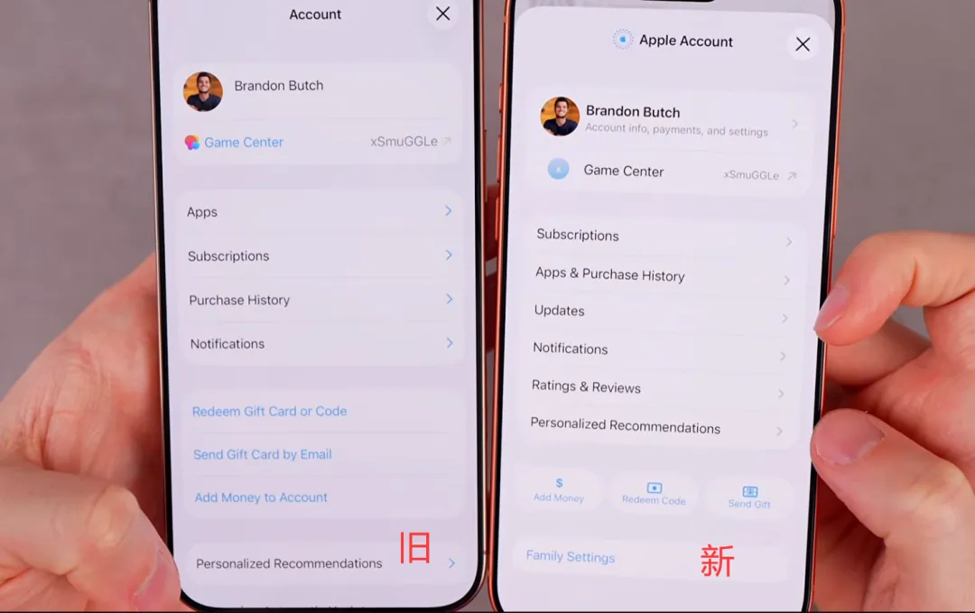 16、调整了 App Store 查看 Apple 账户个人信息页面的样式。充值、兑换礼品卡、发送礼品卡变为独立按钮。