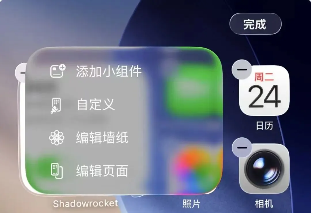 21、调整了主屏幕设置菜单为 Liquid Glass 效果。