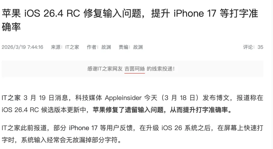 此问题在 iOS 18 时期频繁出现,如今又卷土重来了...