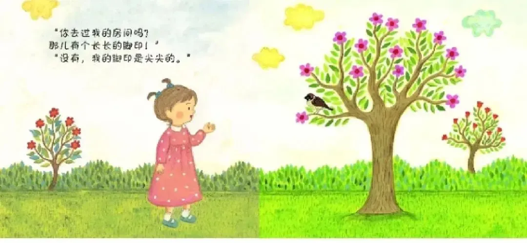 “小麻雀,你去过我的房间吗?那儿有个长长的脚印!”“没有,我的脚印是尖尖的。”
