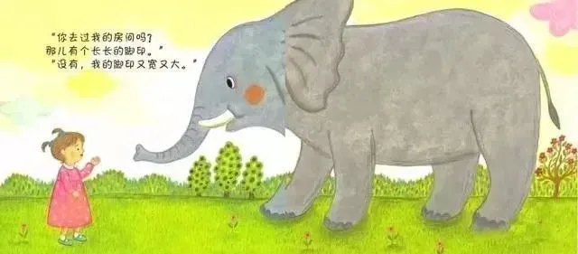 “大象,你去过我的房间吗?那儿有个长长的脚印。”“没有,我的脚印又宽又大。”