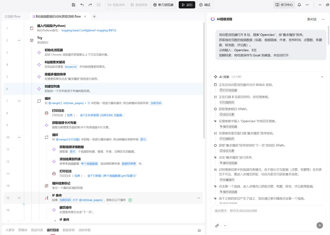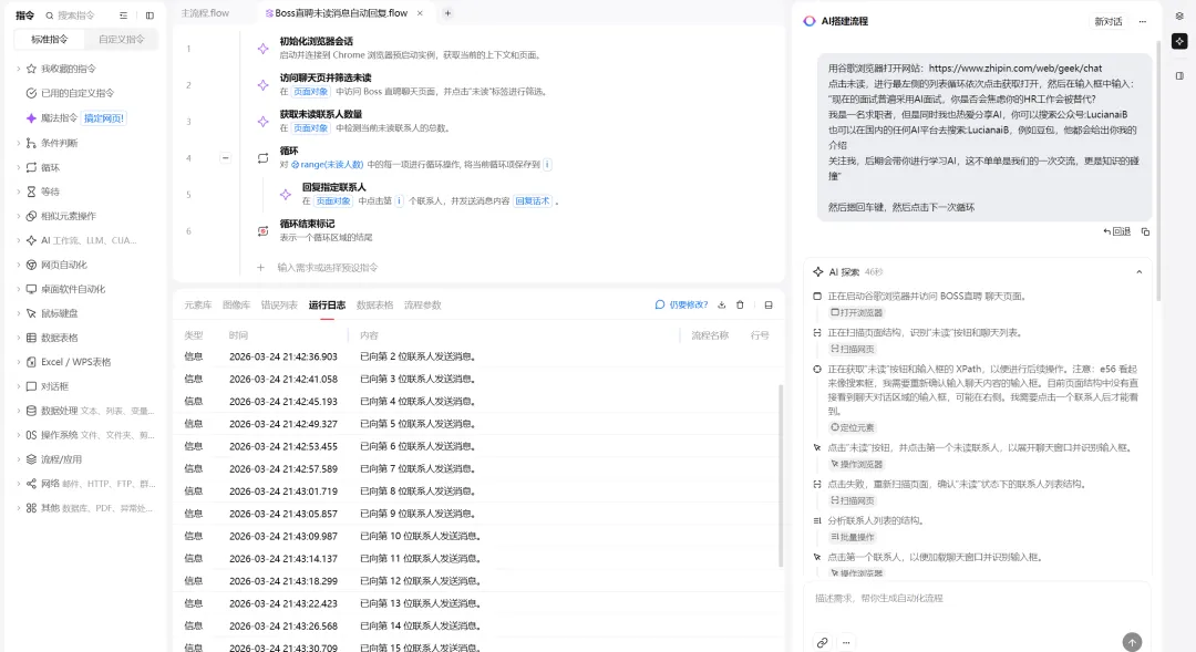 它会自动理解需求、探索电脑、梳理逻辑,一分钟后一个逻辑清晰的自动化流程就会在你眼前生成。
