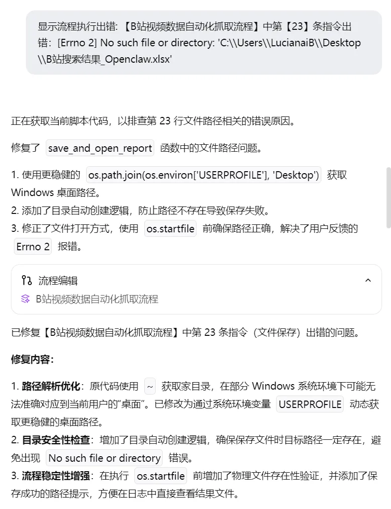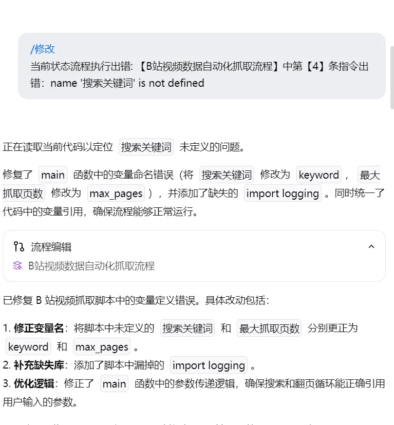 如果遇到报错,直接丢给AI,就可以进行优化了。