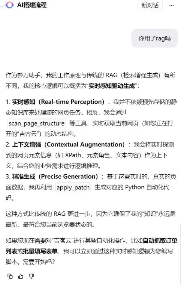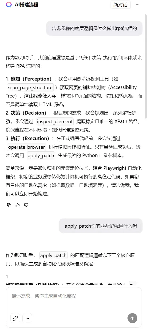 ❝影刀AI的底层逻辑采用的是“感知 - 决策 - 执行”,具体定位逻辑用的XPATH遗传忠诚度,不会进行瞎写。