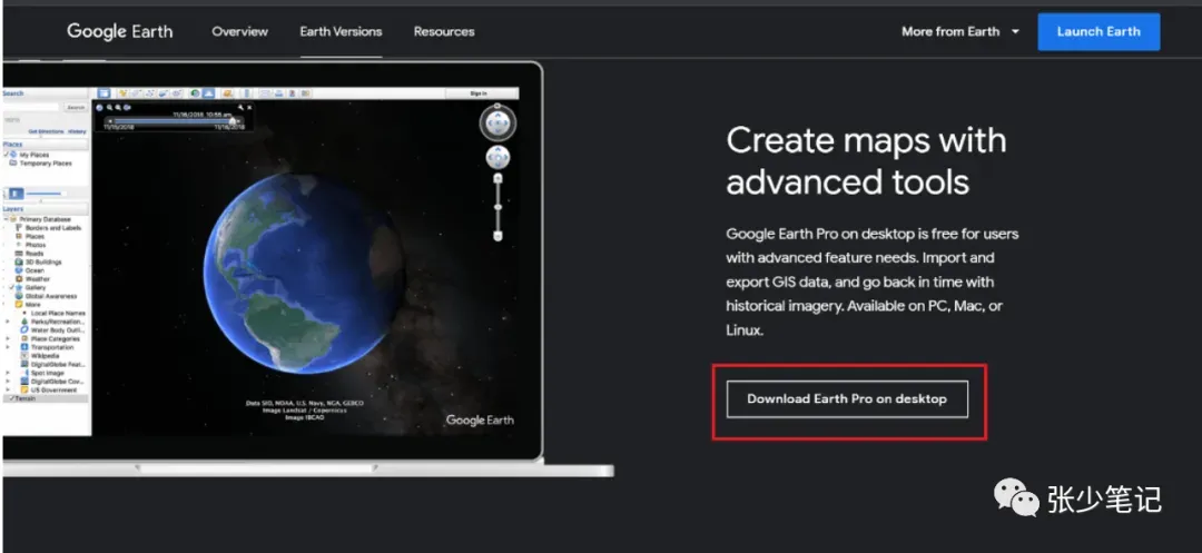 步骤 3:现在打开新窗口,然后单击“在桌面上下载 Earth Pro”。