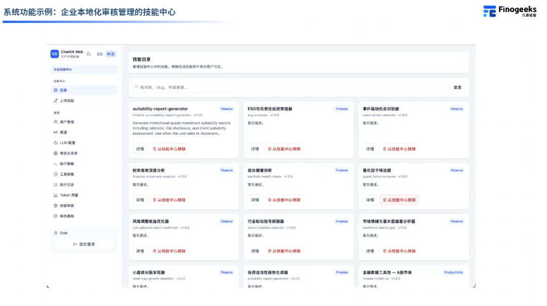 管理员在中心内登记、审批、启用或禁用技能;
