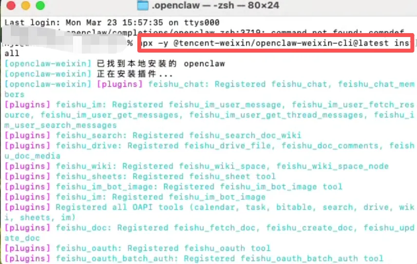 打开你安装 OpenClaw 的机器,打开命令行(终端),粘贴刚才复制的命令,回车。