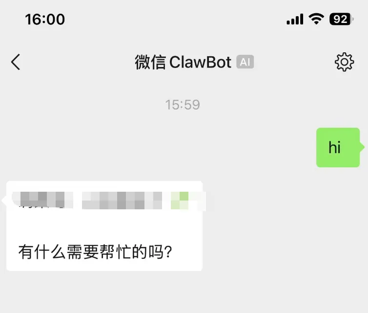 配对成功后,你的微信聊天界面会多出一个 OpenClaw 的对话框。