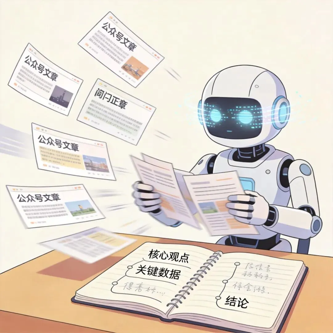 你是不是微信收藏夹里存了几百篇文章,从来没再看过?把链接都拿出来,让wechat-summary一个个总结,整理成一个要点文档,以后复习起来方便多了。