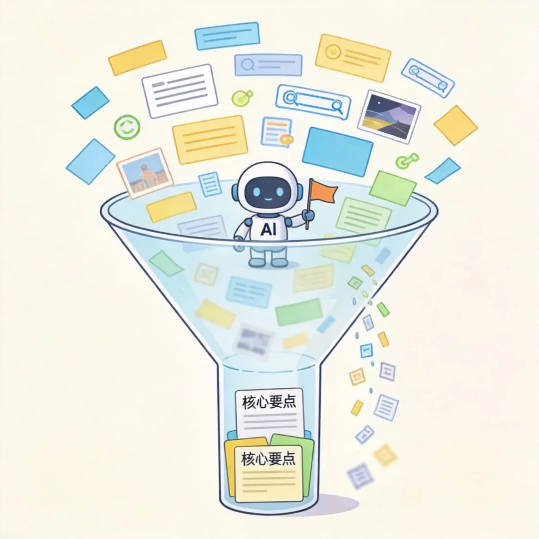 看到一篇好文章,想分享给朋友,又不想只扔个链接,可以让AI总结好,你把总结发给他,朋友一下子就能知道这文章讲了什么,更愿意点进去看。