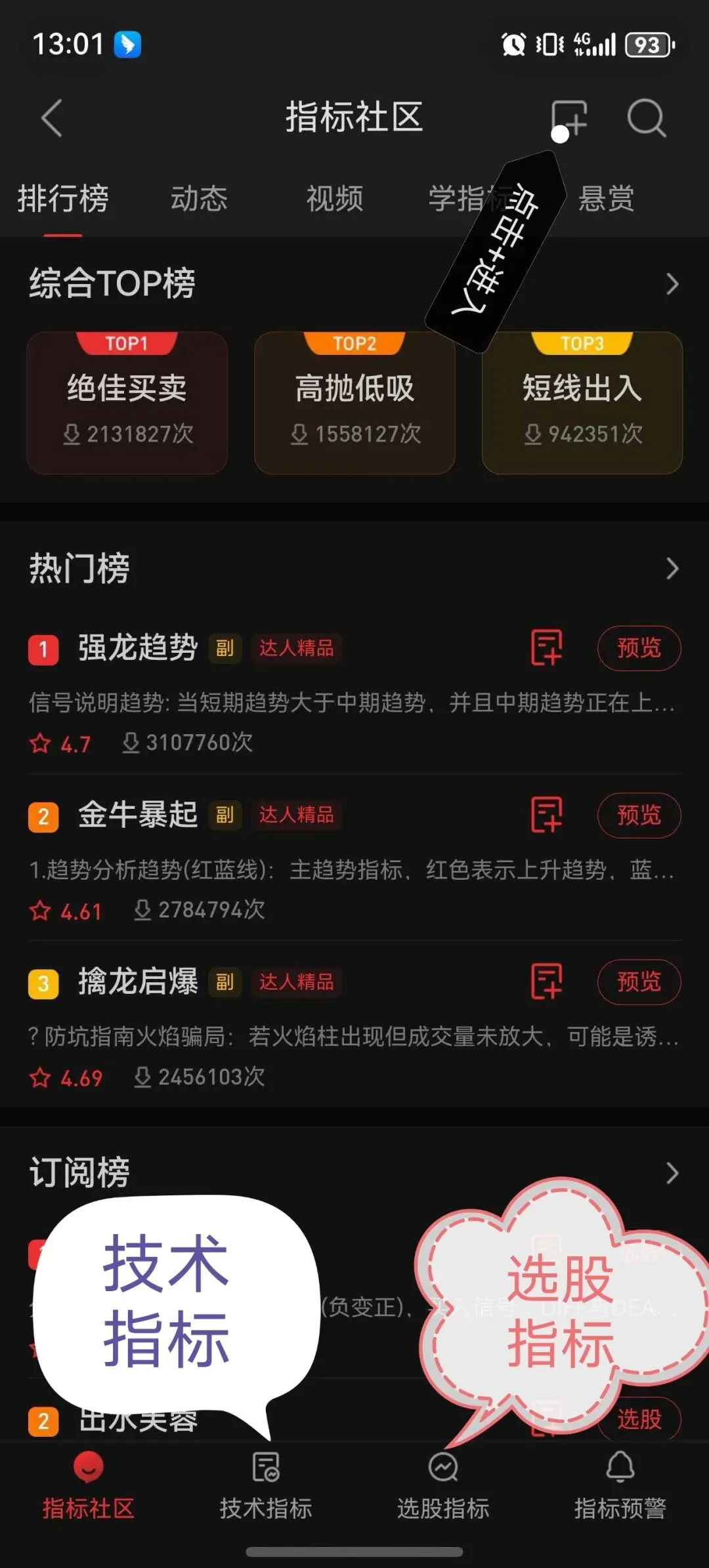 类型选错=指标不显示:看盘用选「技术」,选股用选「选股」
