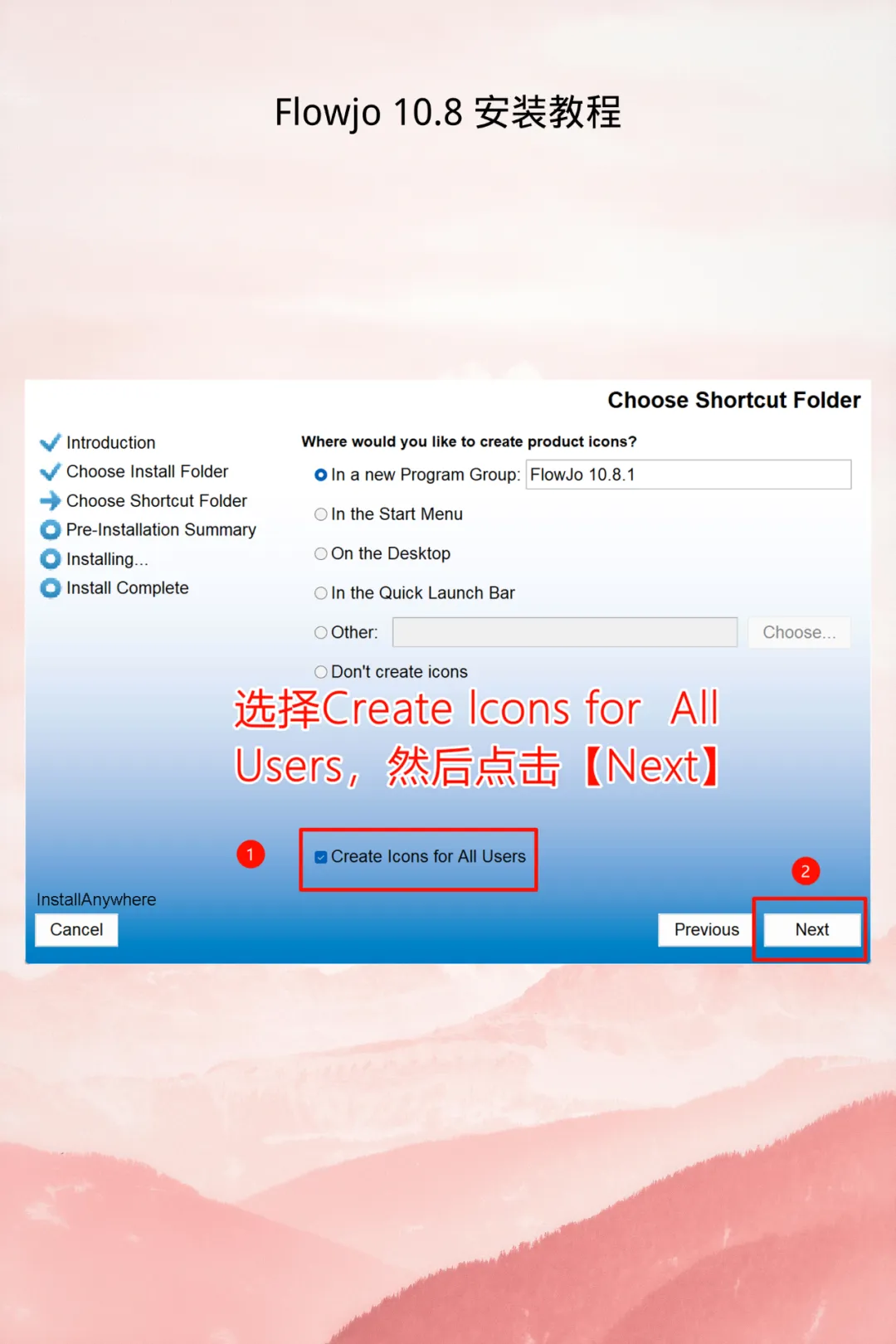 3. 权限配置:勾选Create Icons for All Users,点击 Next。