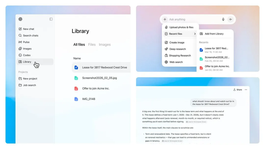 OpenAI 推出了针对 ChatGPT 的 Library 功能,旨在帮助用户更便捷地查找、复用及基于其上传或创建的文件进行构建。