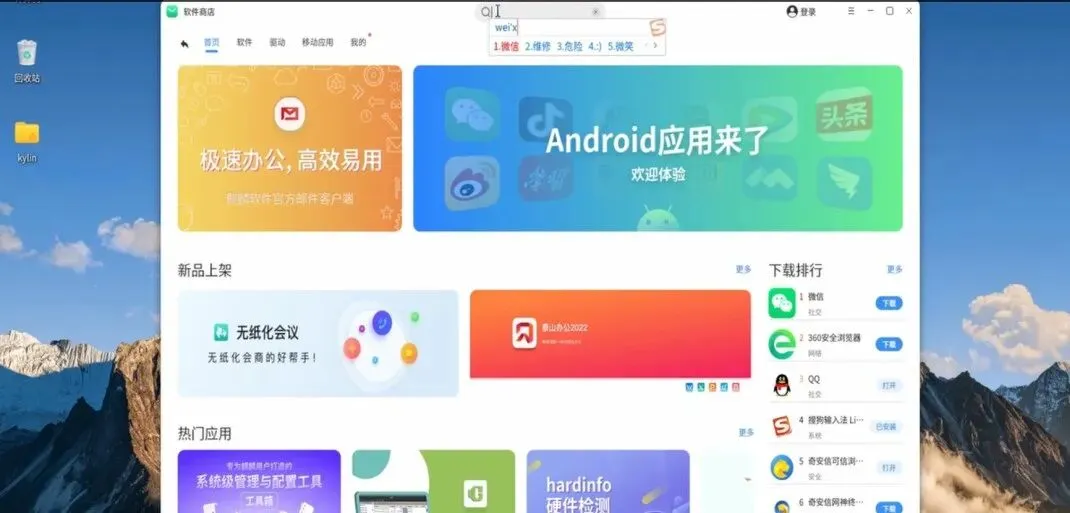 如果在软件商店搜索不到想要安装的软件,需要到相应软件的官网下载安装包自行安装,这里以腾讯QQ、WPS、360安全浏览器、向日远程控制四个软件为例。